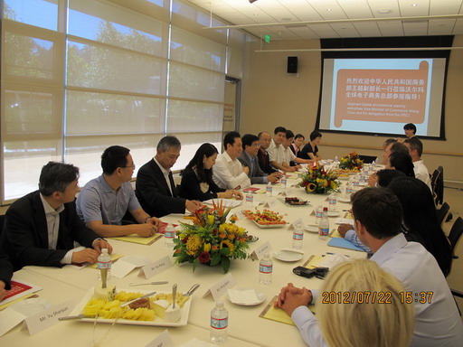 7月22日,商务部副部长王超一行率中国贸易投资促进团访问加州。王超一行参观了位于圣布鲁诺的沃尔玛电子商务公司总部,听取了公司发展报告及在中国业务的最新进展和远期规划。高占生总领事、夏翔参赞陪同参观。